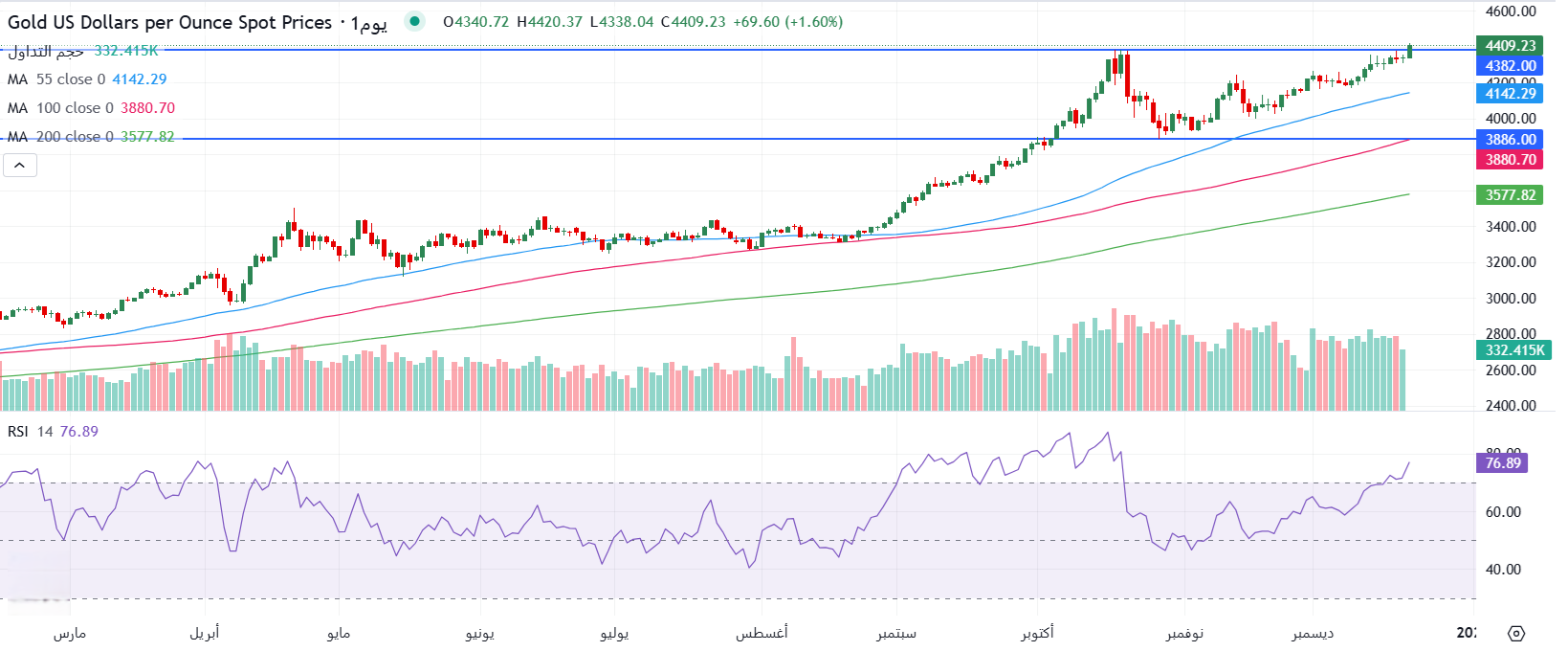 في الأسواق المحلية، تسجل أسعار الذهب قمم قياسية جديدة مع عودة ظهور التوترات الجيوسياسية في الشرق الأوسط بعد تصريحات رئيس وزراء إسرائيل بأنه ينوي إحاطة ترامب بنيته توجيه ضربات إسرائيلية مرة أخرى على إيران بسبب برامج التخصيب النووي وبرامج الصواريخ الباليستية في إيران، وذلك على خلفية تسجيل قمم قياسية جديدة في أسواق الذهب العالمية على خلفية المخاوف بشأن تجدد الصراع بين إسرائيل وإيران، إلى جانب تصاعد التوترات بين الولايات المتحدة وفنزويلا والحرب المستمرة بين روسيا وأوكرانيا، حيث يُبقي كل ذلك المخاطر الجيوسياسية قائمة. يتلقى المعدن النفيس دعماً أيضاً من توقعات تيسير البنك الاحتياطي الفيدرالي Fed التي تعزز الطلب على المعدن الأصفر المقوم بالدولار. يرتفع الذهب عيار 21 الأكثر تداولاً في مصر بقوة إلى 5860 جنيه للبيع و 5840 جنيه للشراء في وقت كتابة هذا التقرير، وذلك مع اختراق المعدن النفيس في الأسواق العالمية للقمة القياسية السابقة عند محيط منطقة 4382 دولار للأونصة التي تحولت الآن إلى منطقة دعم، مسجلاً قمة قياسية جديدة عند محيط منطقة 4420 في وقت كتابة هذا التقرير، في انتظار إشارات من بيانات الناتج المحلي الإجمالي GDP للربع الثالث في الولايات المتحدة المقرر صدورها يوم الثلاثاء في أسبوع تداول مختصر بسبب العطلات قبل الكريسماس.