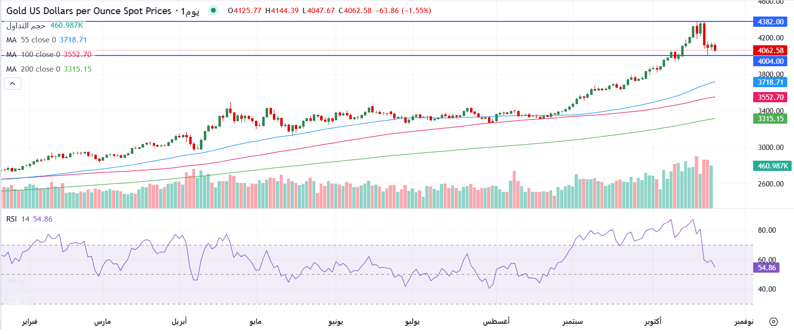 في الأسواق المحلية، تستأنف أسعار الذهب الانخفاض في وقت مبكر من تداولات يوم الجمعة، بعد تسجيل ارتداد طفيف يوم أمس، حيث ينخفض عيار 21 إلى 5525 جنيه للبيع و 5475 جنيه للشراء، في وقت كتابة هذا التقرير، وذلك على خلفية استئناف الانخفاض في أسعار الذهب في الأسواق لتتداول عند محيط منطقة 4070 دولار للأونصة في وقت كتابة هذا التقرير، وكل ذلك على خلفية استمرار الارتداد الأسبوعي في الدولار الأمريكي مع ترقب بداية المحادثات التجارية رفيعة المستوى بين الولايات المتحدة والصين وصدور بيانات التضخم الأمريكية المرتقبة التي تم تأجيلها بسبب تعطيل الحكومة الفيدرالية الأمريكية في وقت لاحق من الجلسة الأمريكية اليوم.