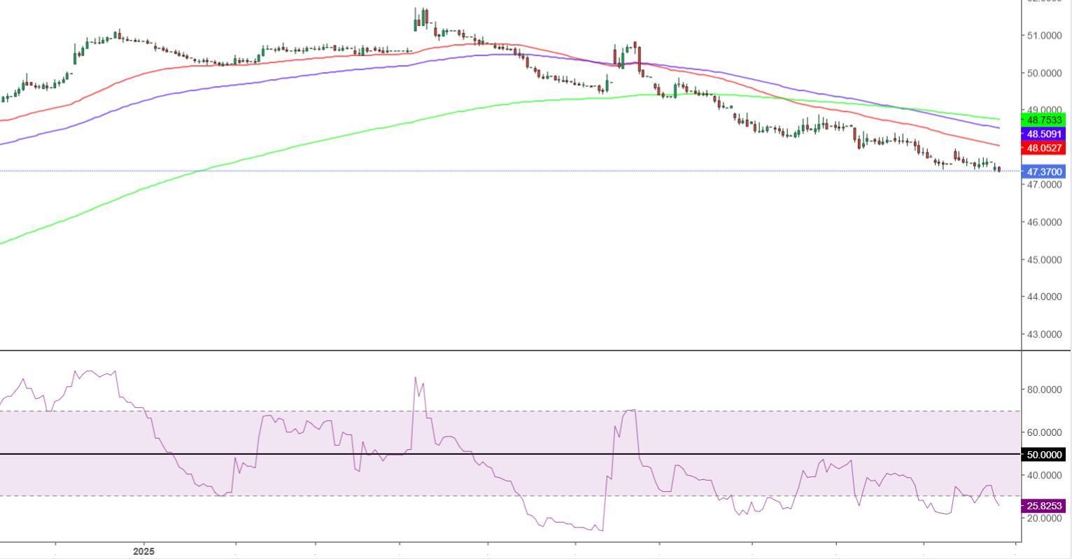 البنك الأهلي المصري: 47.40 جنيه للشراء، 47.50 جنيه للبيع.