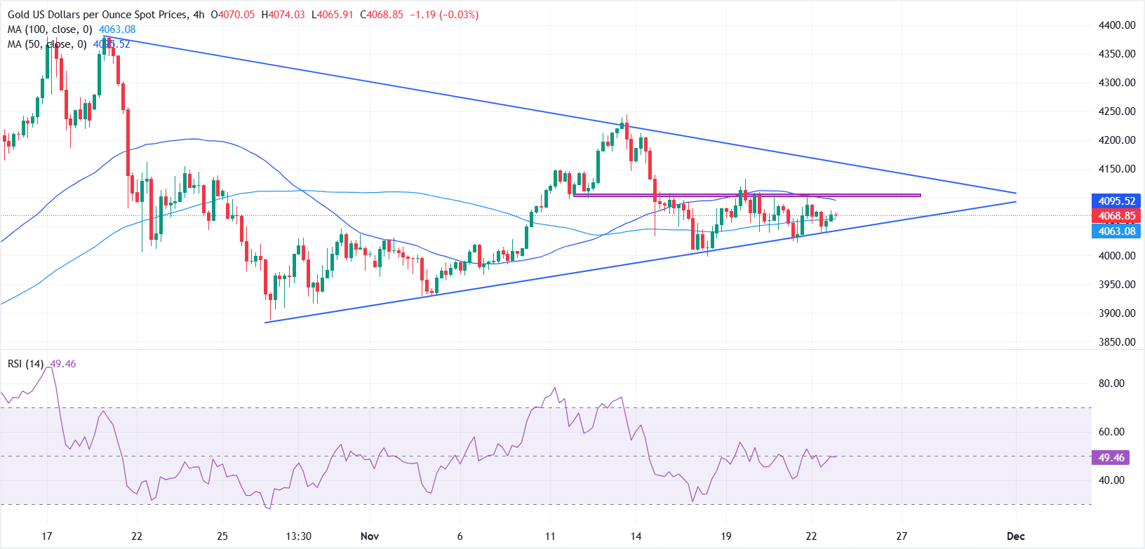 Technical analysis: XAU/USD stalls under $4,100, neutral RSI highlights lack of conviction