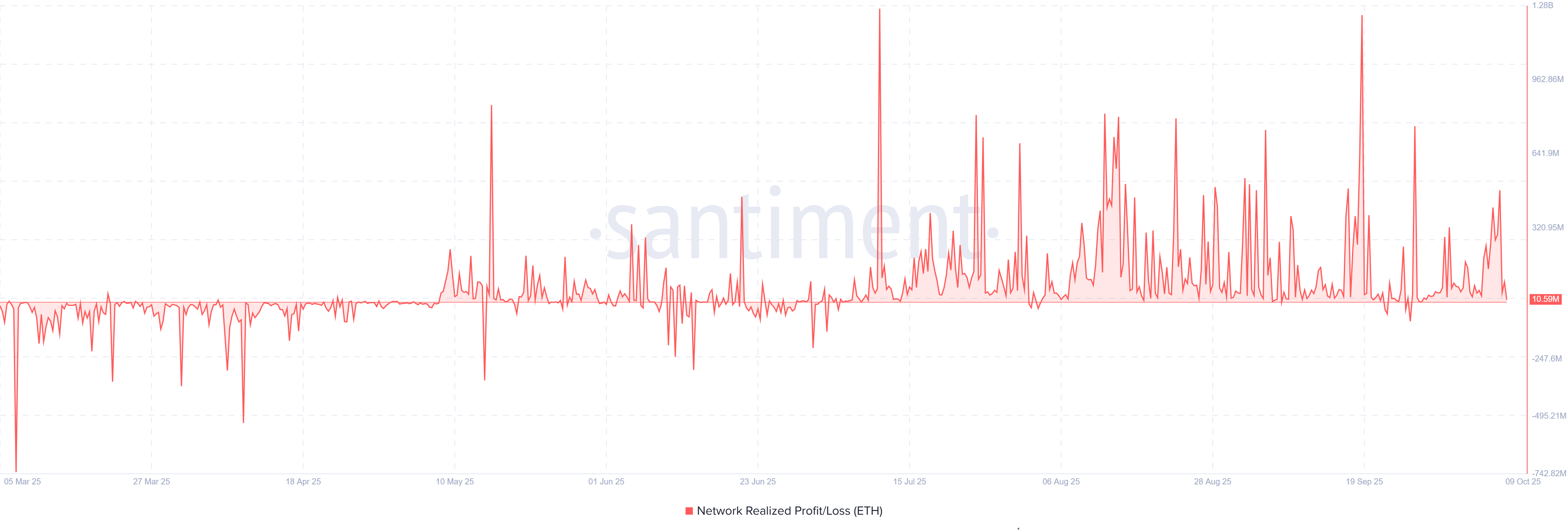 ETH Network Realized Profit/Loss. Source: Santiment