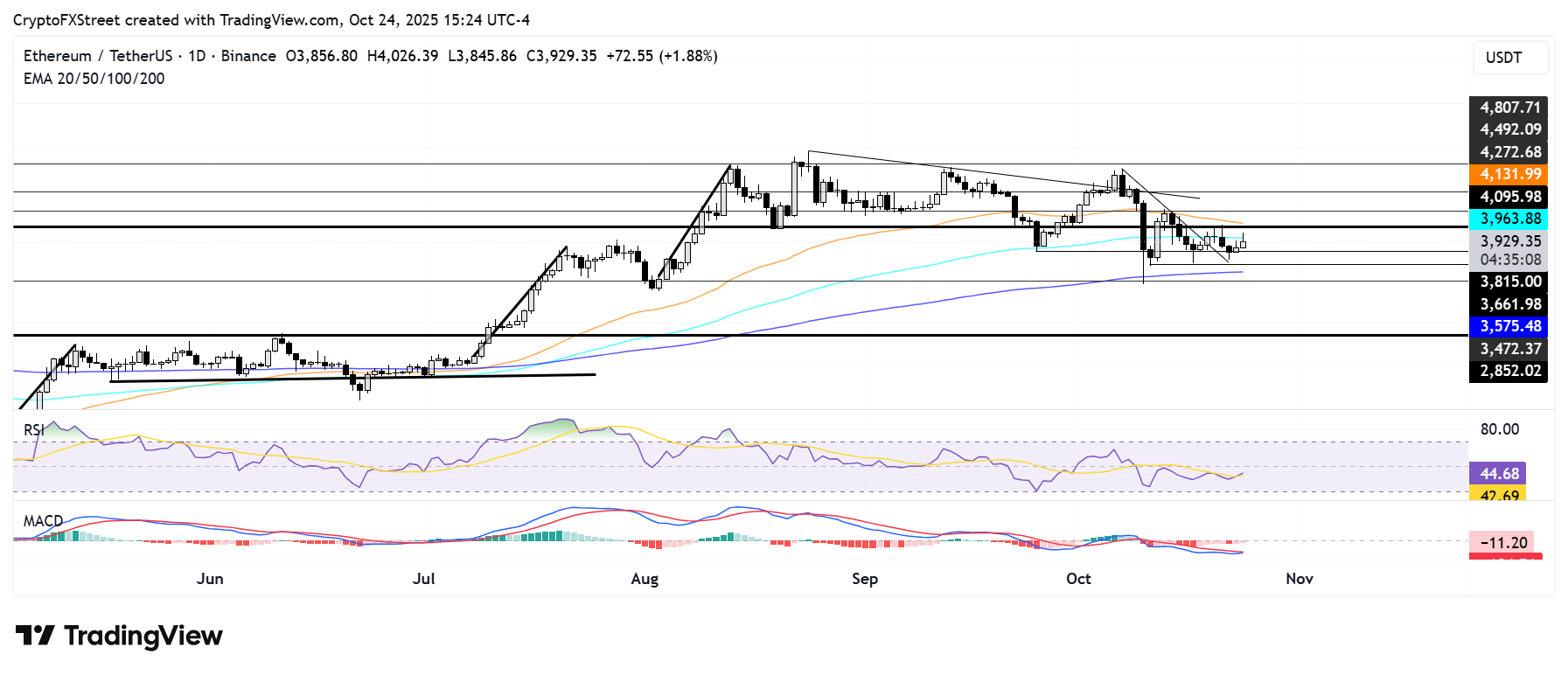 Ethereum Price Forecast: ETH remains subdued by 100-day and 50-day EMAs