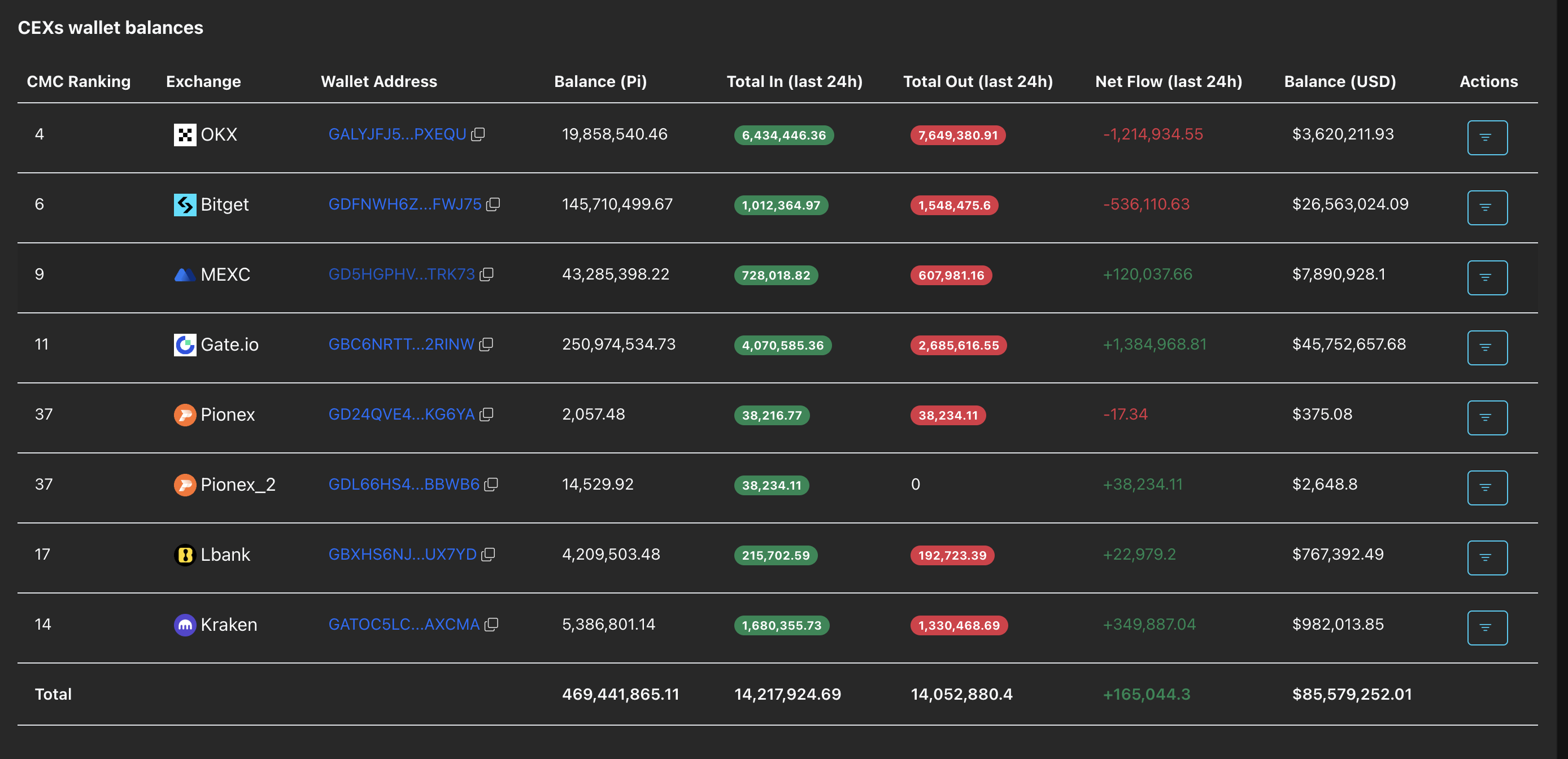 CEXs wallet balances. Source: PiScan.