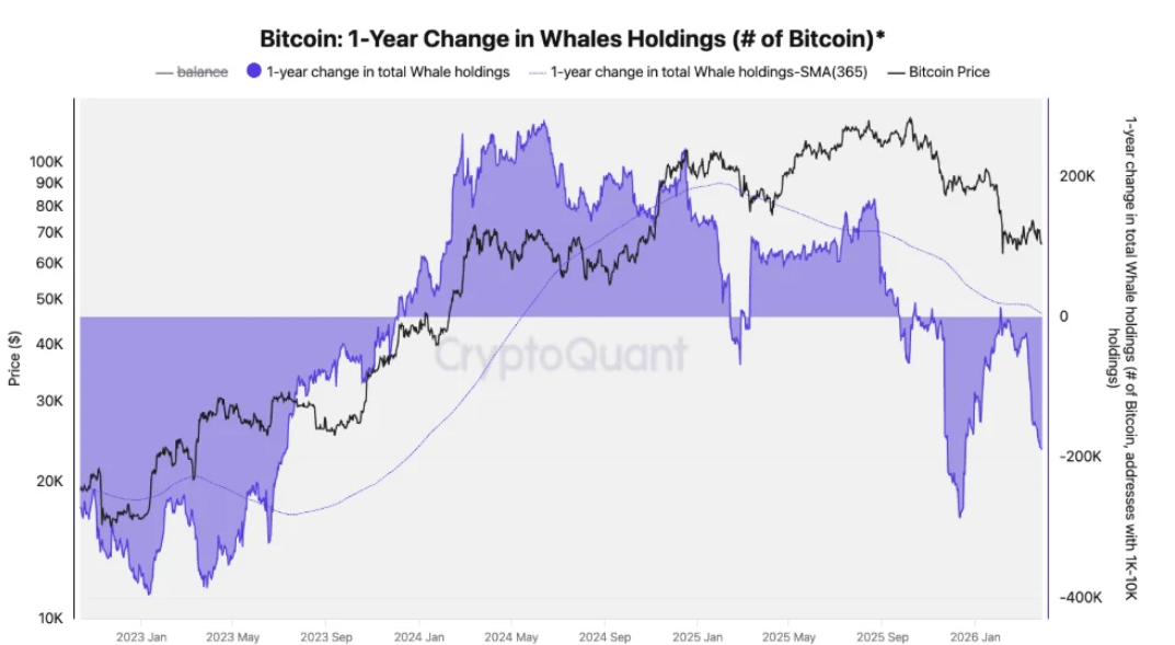 Bitcoin 1-year change in whales holding chart. Source: CryptoQuant