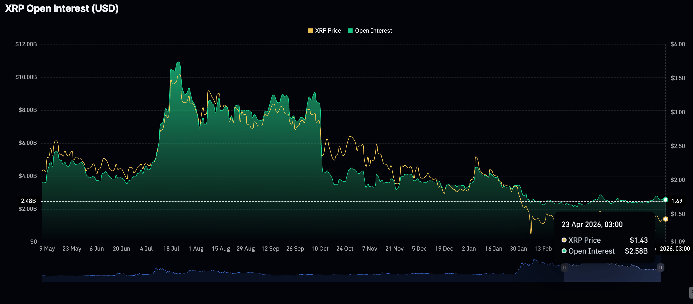 However, retail demand has remained relatively low, with futures Open Interest (OI) steadying at $2.58 billion on Thursday. CoinGlass data shows that OI peaked at $10.94 billion in July, coinciding with XRP hitting a new record high of $3.66. This underscores the positive impact of persistently rising retail demand on the bullish outlook.
