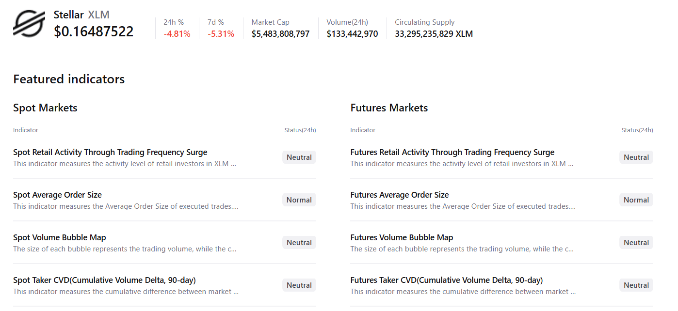 Meanwhile, for XLM, the data shows neutral conditions across other metrics, suggesting traders remain cautious and await stronger directional confirmation.