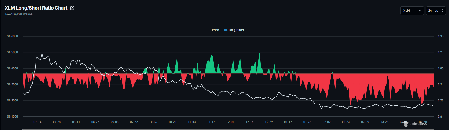 On the derivatives side, Ripple and Stellar data show mixed sentiment. CoinGlass’ long-to-short ratio for XRP and XLM reads 0.88 and 0.87, respectively, on Tuesday. This ratio, being below one, reflects bearish sentiment in the market, as more traders are betting on the asset’s price to fall.