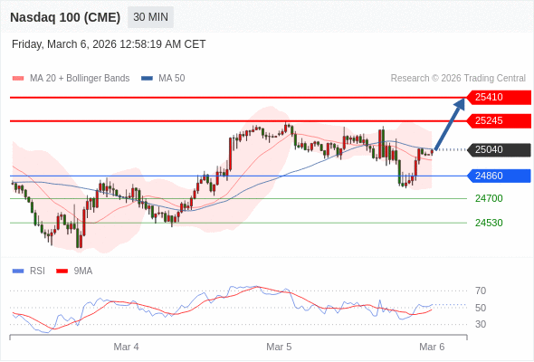在 24860 之上,看涨,目标价位为 25245 ,然后为 25410 。