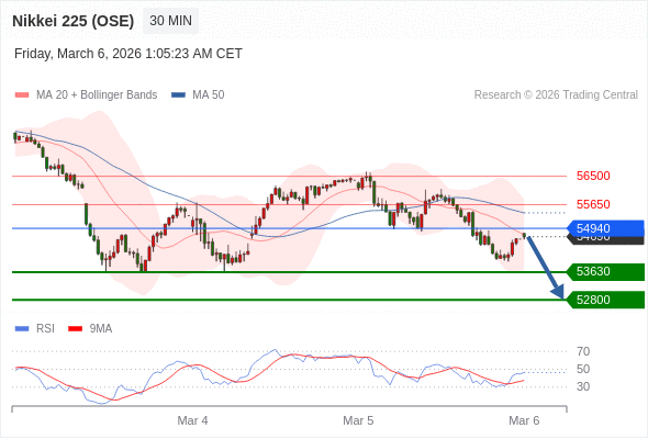 在 54940 之下,看跌,目标价位为 53630 ,然后为 52800 。