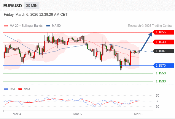 在 1.1570 之上,看涨,目标价位为 1.1630 ,然后为 1.1655 。