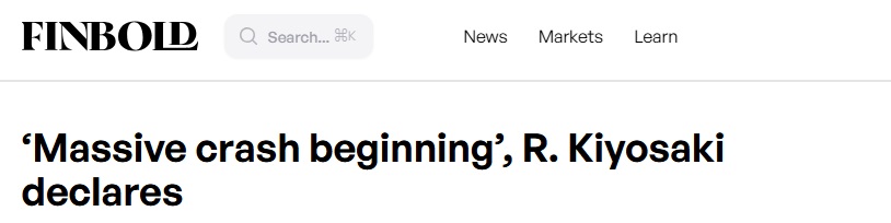 罗伯特·清崎宣称,一场“大规模崩盘”正在展开,并表示“数百万人将被淘汰出局”。