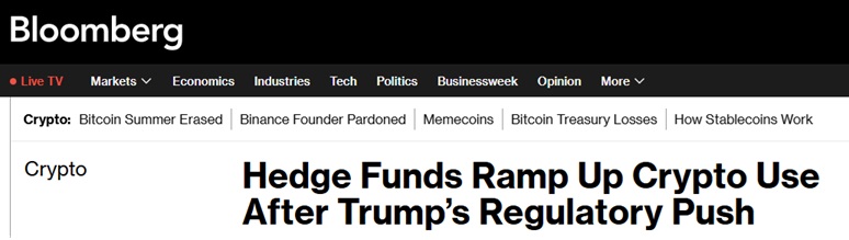 #NFT与加密货币#FX168财经报社(亚太)讯 美国彭博社周五(11月7日)报道称,美国总统特朗普(Donald Trump)的友好态度正在发挥出连牛市都无法做到的作用:在多年抗拒之后,正把主流对冲基金更深入地拉入加密货币领域。