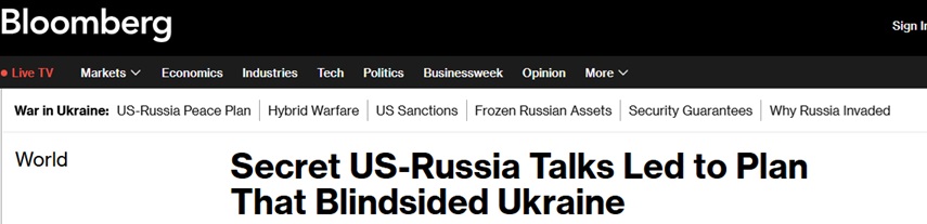 俄乌突传大消息!彭博独家:美俄秘密会谈促成了一项令乌克兰措手不及的计划