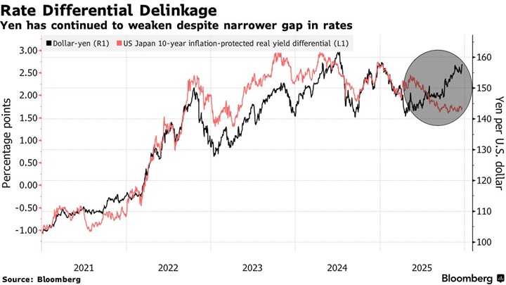 日本财务省去年在外汇市场投入约1000亿美元支撑日元,相关操作大多发生在美元兑日元接近160附近之际。2025年,日元仍是十国集团(G10)货币中兑美元表现最差的货币。