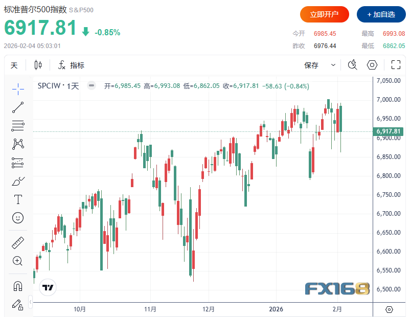 FX168财经报社(北美)讯 美股周二(2月3日)显著回调,市场出现典型的“风格轮动+财报周紧张”组合:资金集中抛售科技与软件股,同时转向更偏“经济改善/防御属性”的板块。与此同时,投资者担忧AI加速行业竞争、挤压软件公司利润空间,在Alphabet与亚马逊本周稍晚公布财报前,市场情绪进一步趋于谨慎。
