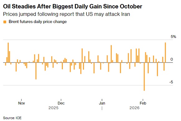 FX168财经报社(亚太)讯 周三(2月18日),油价录得去年10月以来最大单日涨幅,此前有报道称,美国可能会比预期更早对伊朗进行军事干预。周四亚市早盘,油价维持坚挺走势。