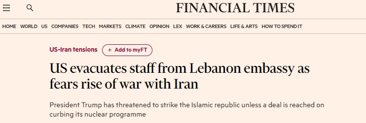 FX168财经报社(亚太)讯 英国《金融时报》周一(2月23日)报道称,华盛顿方面周一已下令驻黎巴嫩的非必要外交人员及其家属撤离,原因是外界对美国可能与伊朗发生军事冲突的担忧不断加剧。