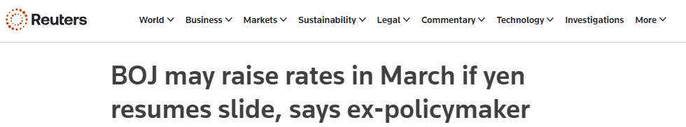 樱井诚说:“从逻辑上看,等到4月再行动更合理,但这也要看日元走势,日本央行仍有可能在3月加息。”