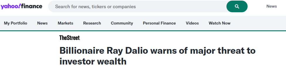 “最大风险不是市场波动”!桥水创始人达利欧警告:投资者财富面临重大威胁