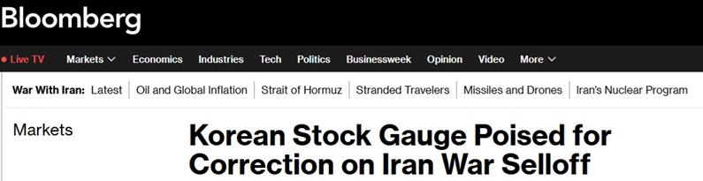 美国彭博社称,韩国股市基准指数正朝着进入技术性回调的方向发展。由于中东冲突引发的避险情绪,在全球最火热的股市之一中掀起了一波急剧抛售。