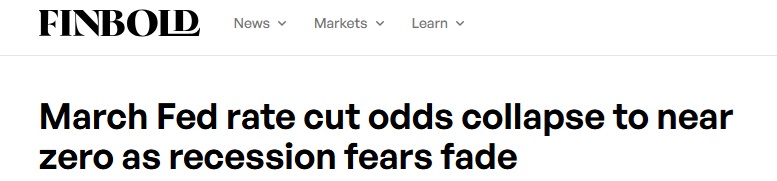 #美联储政策会议#FX168财经报社(亚太)讯 截至3月11日,随着市场对美国经济衰退的担忧消退,美联储在3月18日下调基准利率的概率已降至接近零。