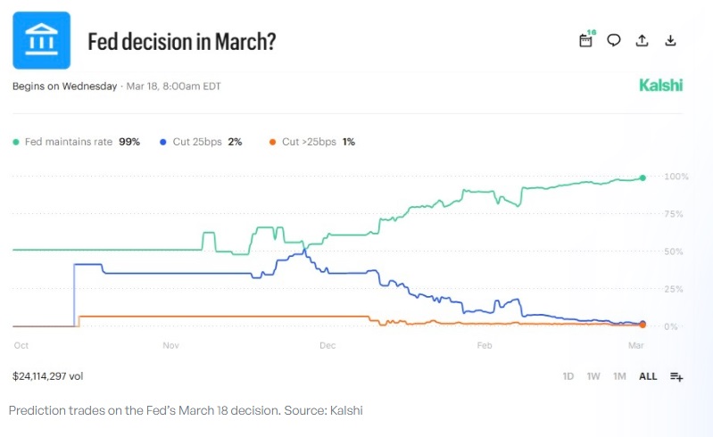 (针对美联储3月18日利率决议的预测交易 来源:Kalshi)