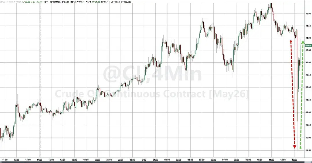 WTI原油短线跳水近5美元,随后很快自低位反弹。
