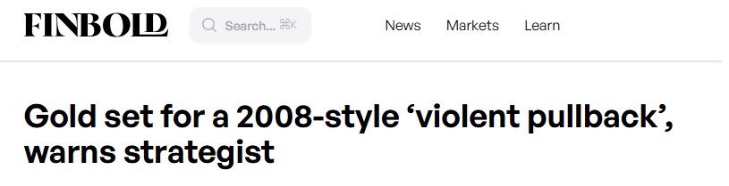 Vermeulen说:“这更像是2007/2008年那样,只是一次剧烈的回调……<…> 我认为我们正在经历经济重置,当黄金价格最终达到峰值时,它可能会回调30%、34%或35%左右。”
