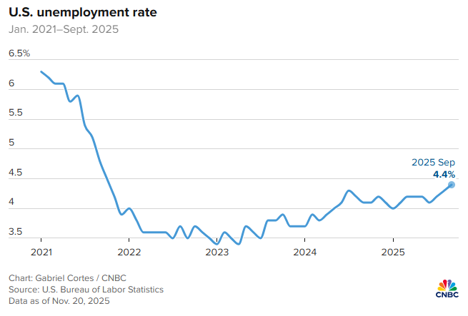 高盛经济团队则指出,若失业率四季度继续维持在4.4%以上,美联储将面临明显的就业压力,从而提升明年初降息概率。