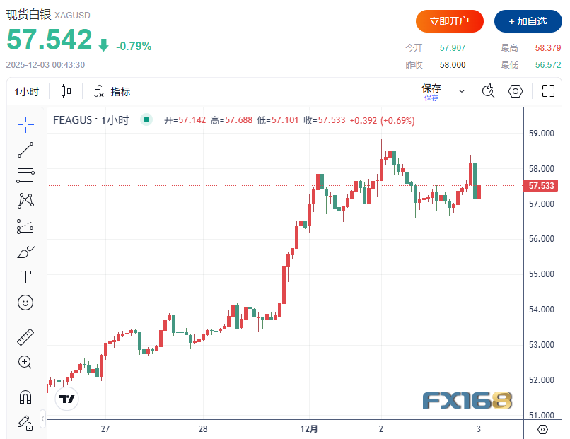 FX168财经报社(北美)讯 周二(12月2日)美市盘中,金价因投资者获利了结自六周高位回落,但市场对美联储下周降息的高度押注仍为金价提供支撑。与此同时,在实体供应持续紧缩及投资需求强劲推动下,白银交投于历史新高下方不远,市场对上海与伦敦库存紧张格局愈发关注。