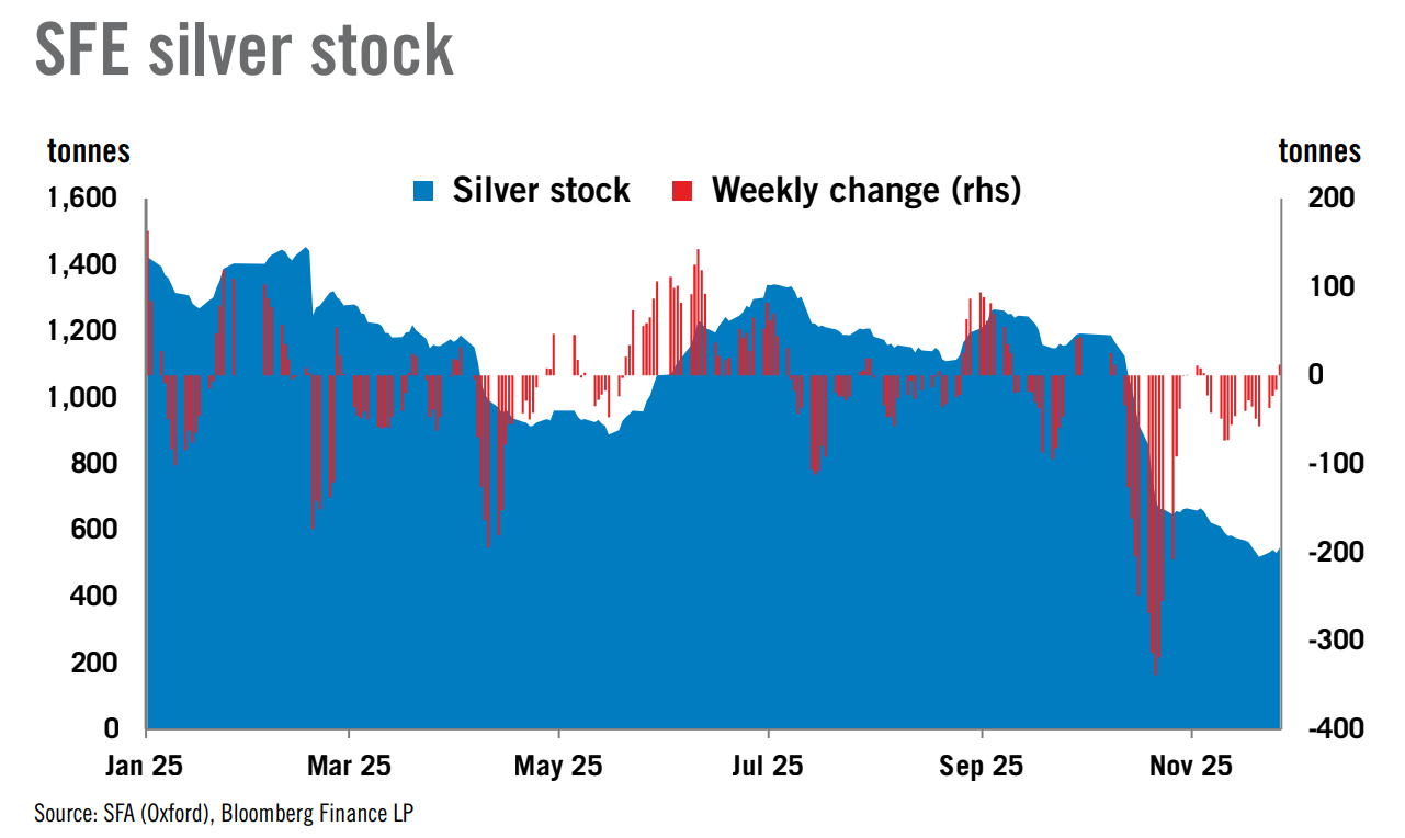 Heraeus 分析师指出,白银实体紧缺现象已经蔓延至上海,库存跌至十年低位。