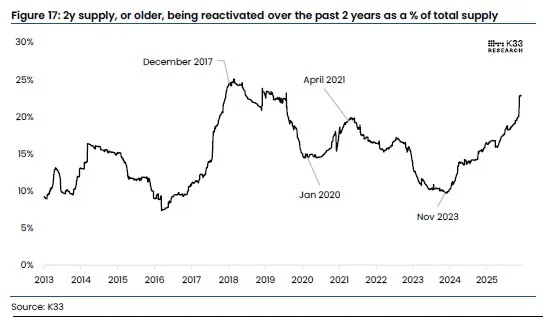 仅在2025年,就有价值近3,000亿美元、此前已“沉睡”超过一年的比特币重新进入流通。链上分析公司CryptoQuant表示,过去30天出现了五年多以来最猛烈的长期持有者抛售之一。