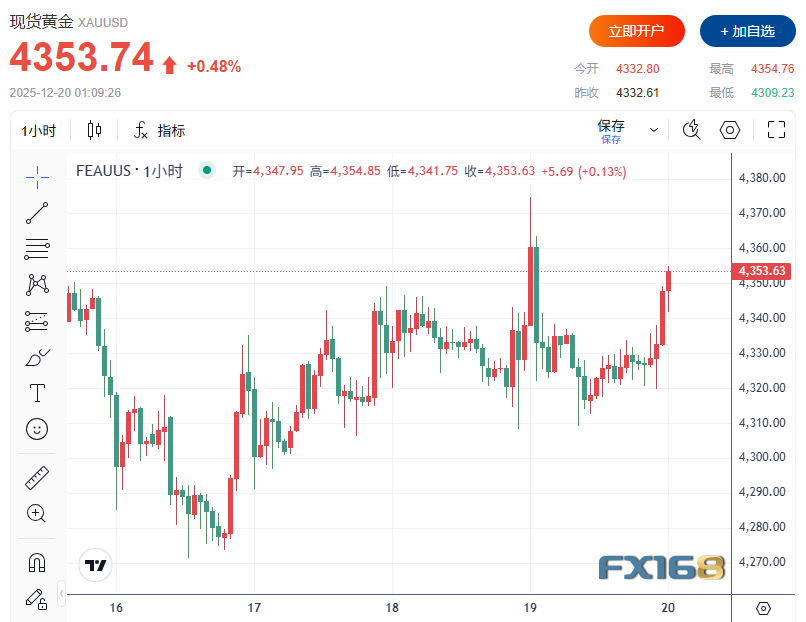OANDA旗下MarketPulse分析师Zain Vawda表示:“金价今日面临的压力可能主要来自年末仓位调整,以及假期前市场整体交投清淡。”他补充称,近期美国经济数据走软,提升了市场对明年降息的预期。