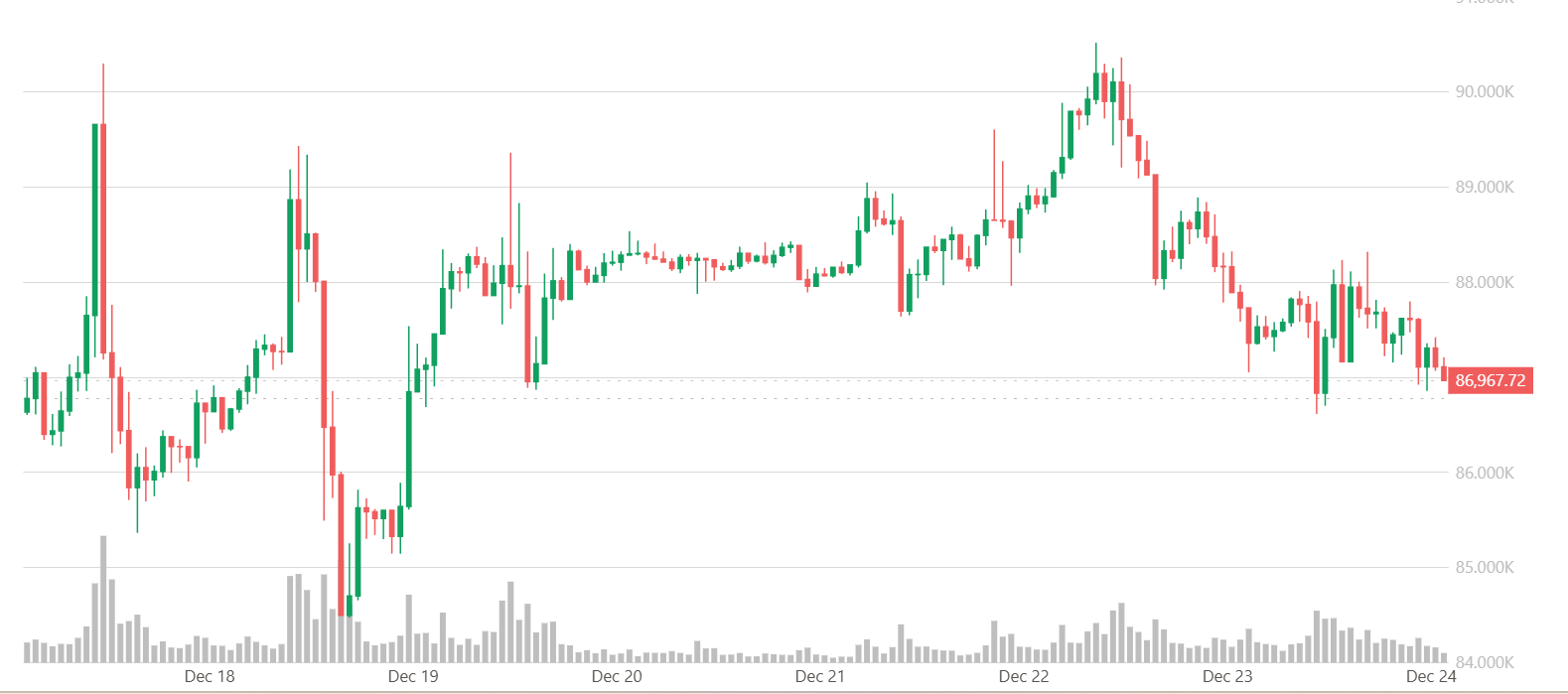 统计显示,过去五年中,比特币在圣诞节前通常呈上涨趋势。今年截至目前,比特币节前涨幅约3.56%。