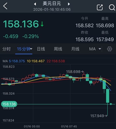 路透社上述报道出炉后,日元短线飙升;美元/日元从158.60附近急跌,最低跌至157.95,创下日内低点。