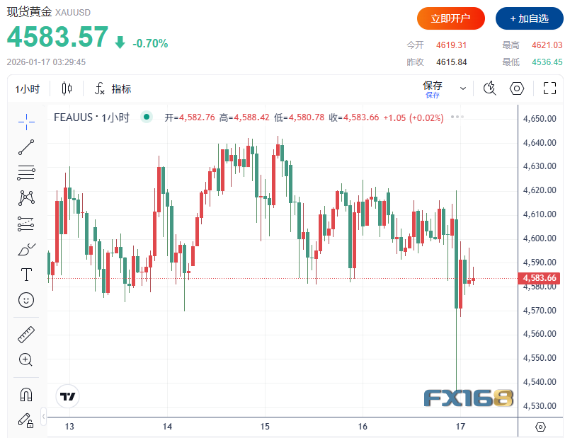 (现货黄金小时图,来源:FX168)