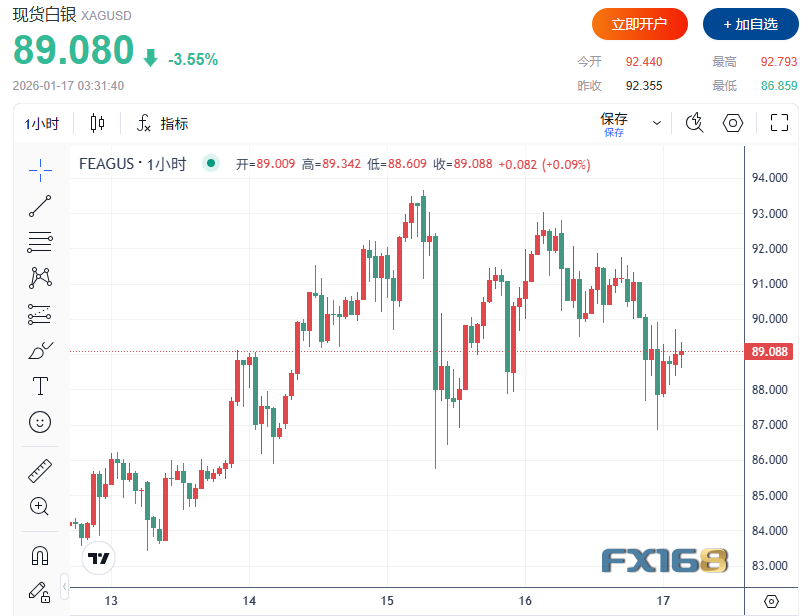 (现货白银小时图,来源:FX168)