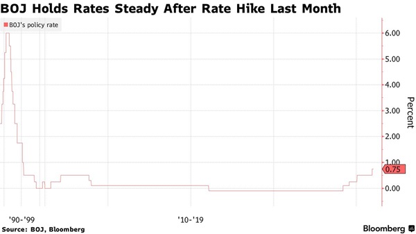 根据声明,日本央行周五将政策利率维持在0.75%,符合所有接受调查的经济学家的预期。这使得借贷成本维持在三十年来的最高水平。