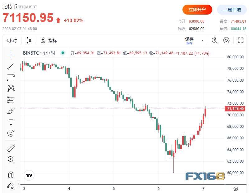大反转!全球市场“涨”声大作:道指狂飙近1000点、比特币涨破7.1万美元、白银大涨超8%
