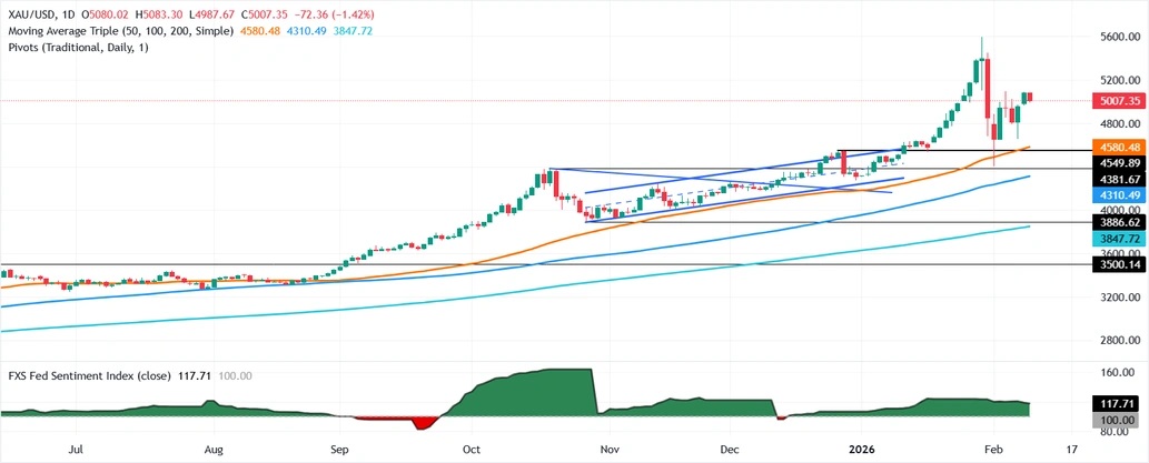 Valencia补充道,反之,如果金价跌破5000美元/盎司,则可能测试探20日简单移动平均线(SMA)4910美元/盎司,随后可能下探4800美元/盎司,最终瞄准2月2日的低点4402美元/盎司。