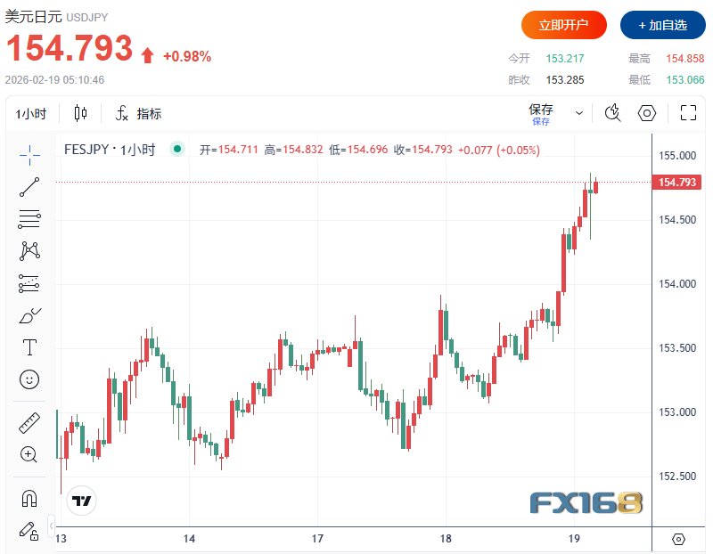 会议纪要公布后,美元兑日元稍早一度短线急跌超40点,最低下探154.33。