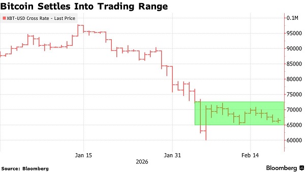 FX168财经报社(亚太)讯 美国彭博社周五(2月20日)报道称,比特币在窄幅交易区间内整理,投资者在市场崩盘近两周后仍在寻找方向。