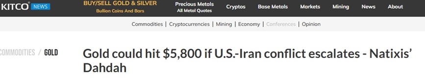 他补充称:“鉴于目前价格处于横盘,我们估计这可能意味着在发动攻击后的两周内,金价将达到5500—5800美元/盎司。”
