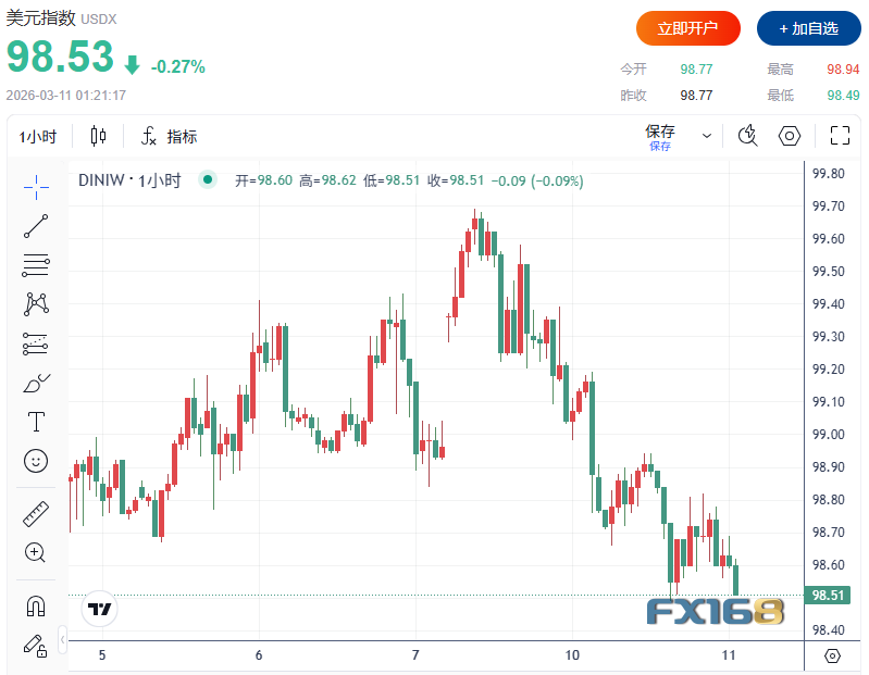 外汇市场同样受到地缘政治风险驱动。美元指数周二下跌约0.3%至98.49,创一周新低。主要货币走势方面,欧元/美元升至1.1652,美元/日元跌至157.49,英镑/美元反弹至1.3471。
