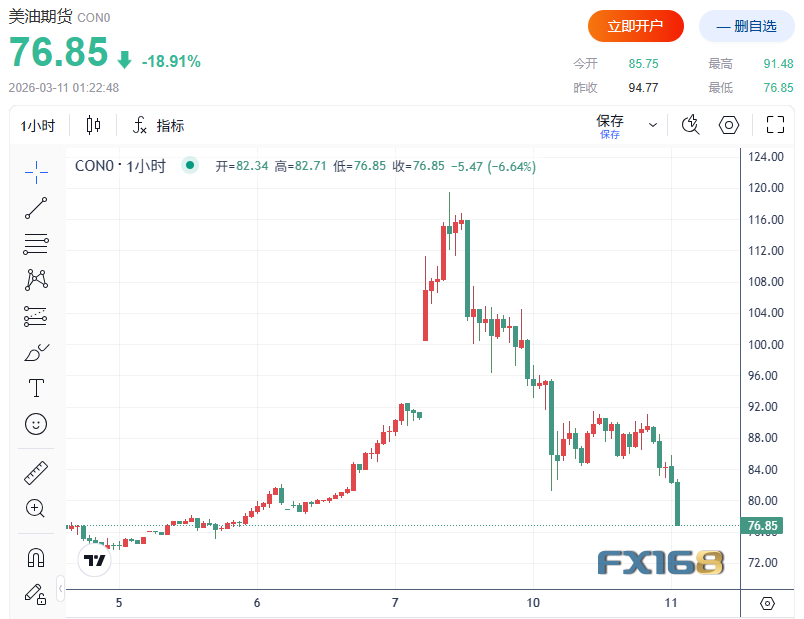 最新数据显示,布伦特原油期货下跌超18%至81.20美元/桶,美油期货下跌近19%至76.85美元/桶。
