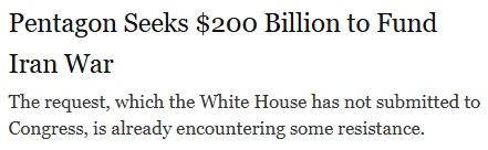 不过,《华盛顿邮报》随后援引一位不具名的政府高级官员称,五角大楼已要求白宫批准一项超过2000亿美元的国会拨款请求,用于支持持续升级的战争行动。另有三名知情人士透露,这笔资金将主要用于扩大关键弹药的生产能力,以支撑美以双方自冲突爆发以来对伊朗数千个目标的打击行动。
