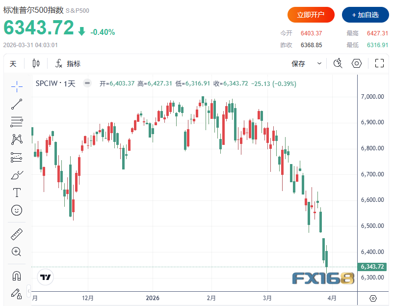 FX168财经报社(北美)讯 周一(3月30日),美股主要股指走势分化,但整体风险偏好依旧偏弱。市场一方面受到持续走高的国际油价压制,另一方面又面临科技股大幅回调带来的估值压力。尽管美联储主席鲍威尔当天释放出偏“观望”的政策信号,并淡化了立即加息的必要性,但这并未扭转投资者对中东冲突、通胀反复以及经济放缓风险的担忧。