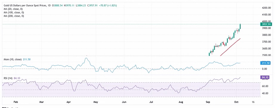 24K99讯 周二(10月7日)亚市盘中,现货黄金维持坚挺走势,目前金价位于3967美元/盎司附近。FXStreet首席分析师Valeria Bednarik撰文,对黄金技术前景进行分析。