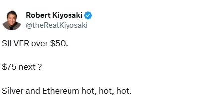 24K99讯 在持续的白银牛市中,畅销个人理财经典《富爸爸穷爸爸》的作者罗伯特·清崎(Robert Kiyosaki)再作出大胆的预测,即白银价格可能在一年内再暴涨超40%。
