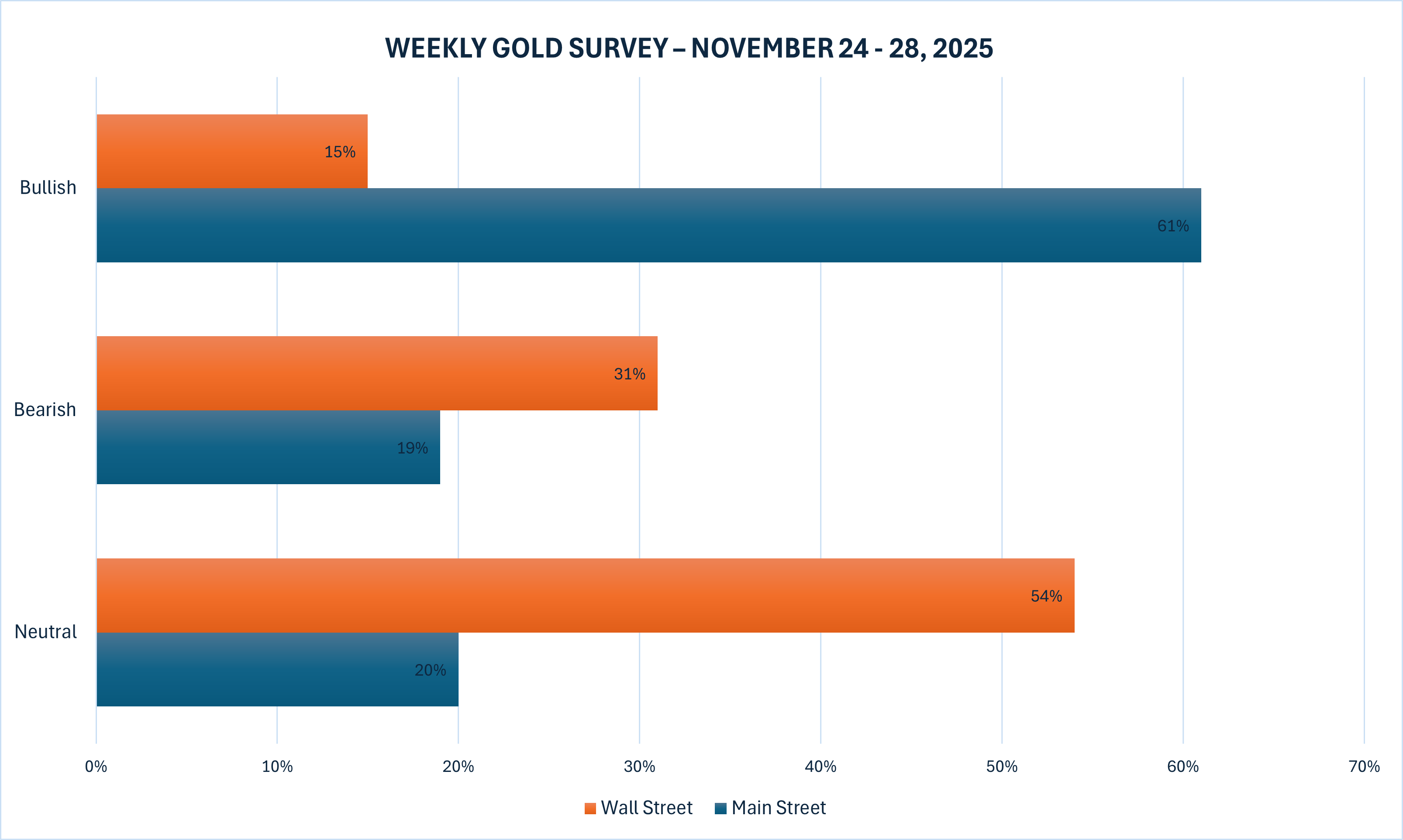 最新的 Kitco 黄金周度调查显示,大多数华尔街分析师转为看空或中性,而散户仍以看多为主。